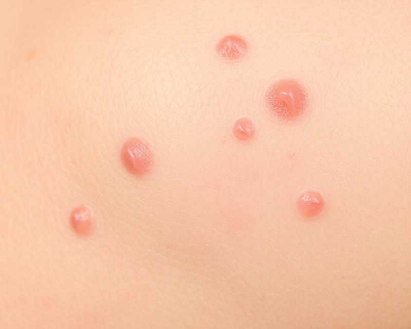 - zaczerwienienie skóry w okolicach krostek,